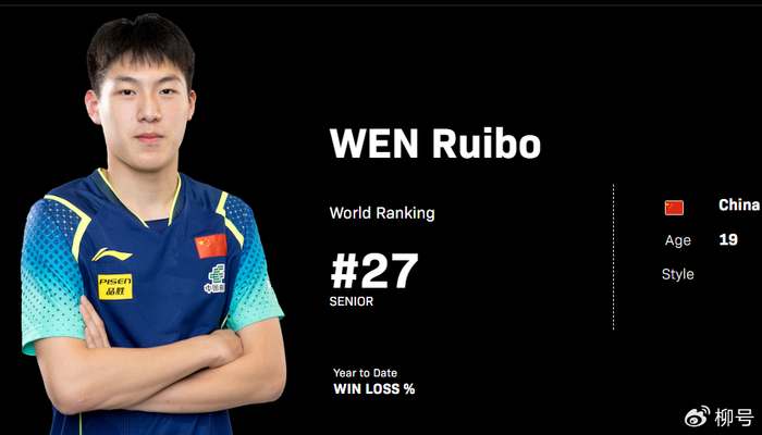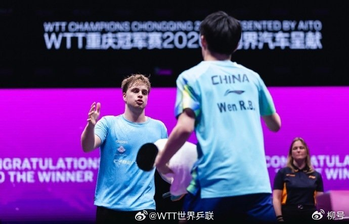 本赛季,19岁小将温瑞博赢得长足超越,WTT多哈冠军赛打进男单决赛。带着本赛季的广宽现象,温瑞博又在重庆冠军赛有火爆发扬,1/16决赛,他以3-0轻取法国选手科顿。