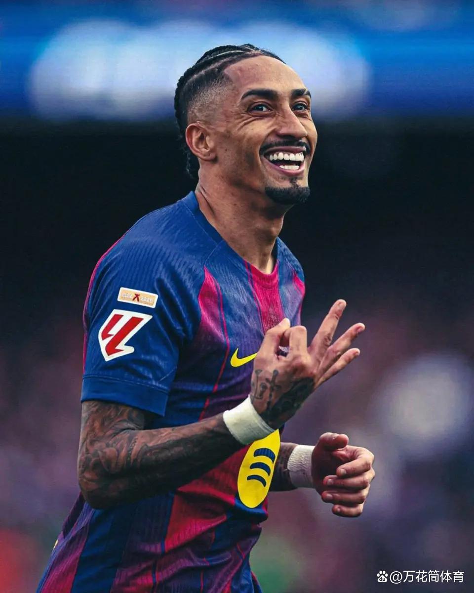 下半场刚刚运转,巴萨便再次提速。第51分钟,替补登场的费尔明送出直塞,拉菲尼亚停球解脱后迫害起脚,皮球击中驻守球员发生折射后吊入球门,巴西边锋完成帽子戏法,巴萨4-1再次接开分差。