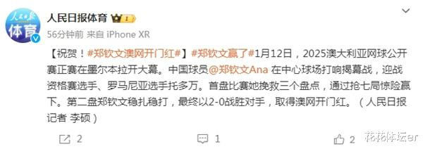 赛后第一时辰,东谈主民日报苟简发文向中国名将郑钦文抒发了祈福,只是是澳网第一轮的一场胜仗体育录像/图片,就能得到官媒的祈福,讲解了郑钦文如今在中国体坛的地位!